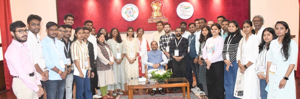 ଭୁବନେଶ୍ୱର, ୨ ଡିସେମ୍ବର, ୨୦୨୪: ଯୁବା ସଙ୍ଗମର ପଞ୍ଚମ ପର୍ଯ୍ୟାୟର ଅଂଶ ଭାବରେ ୨୦୨୪ ଡିସେମ୍ବର ୨ ତାରିଖରେ ଓଡ଼ିଶାକୁ ପରିଚୟାତ୍ମକ ଗସ୍ତ (ଏକ୍ସପୋଜର ଭିଜିଟ୍)ରେ ଆସିଥିବା ମହାରାଷ୍ଟ୍ରର ବିଭିନ୍ନ ଉଚ୍ଚ ଶିକ୍ଷା ପ୍ରତିଷ୍ଠାନର ୫୦ ଛାତ୍ର ଛାତ୍ରୀଙ୍କର ଏକ ପ୍ରତିନିଧି ଦଳକୁ ଓଡ଼ିଶାର ସମ୍ମାନନୀୟ ରାଜ୍ୟପାଳ ଶ୍ରୀ ରଘୁବର ଦାସ ସାକ୍ଷାତ କରିଛନ୍ତି। ସେ ଛାତ୍ର ଛାତ୍ରୀଙ୍କ ସହିତ ଆଲୋଚନା କରିବା ସାଙ୍ଗକୁ ‘ଏକ୍ ଭାରତ ଶ୍ରେଷ୍ଠ ଭାରତ’ ଲକ୍ଷ୍ୟ ପ୍ରତି ନିଜର ଅବଦାନ ରଖିବାକୁ ପ୍ରେରଣା ଦେଇଥିଲେ। ପ୍ରଧାନମନ୍ତ୍ରୀ ଶ୍ରୀ ନରେନ୍ଦ୍ର ମୋଦୀ ଜୀଙ୍କ ନେତୃତ୍ୱ ଅଧୀନରେ ଏକ୍ ଭାରତ ଶ୍ରେଷ୍ଠ ଭାରତ (ଇବିଏସ୍ବି)ର ପ୍ରୟାସକୁ ସେ ପ୍ରଶଂସା କରିଥିଲେ।