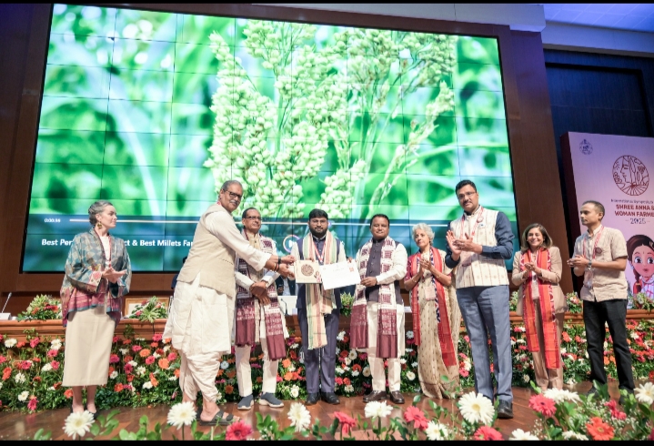 ଭୁବନେଶ୍ୱର : କୃଷି ଐତିହ୍ୟ ଓ ଜୈବ ବିବିଧତା ସଂରକ୍ଷଣରେ ମହିଳାଙ୍କ ଭୂମିକା ସମ୍ପର୍କରେ ଲୋକସେବା ଭବନ କନଭେନସନ ସେଣ୍ଟର, ଭୁବନେଶ୍ୱର ଠାରେ ‘ଅନ୍ତର୍ଜାତୀୟ ଶ୍ରୀ ଅନ୍ନ ଓ ମହିଳା କୃଷକ ସମ୍ମିଳନୀ -୨୦୨୫’ ଅନୁଷ୍ଠିତ ହୋଇଯାଇଛି। ଶ୍ରୀ ଅନ୍ନ ଅଭିଯାନର ଉତ୍କର୍ଷତା ନିମନ୍ତେ ସର୍ବୋଚ୍ଚ ମିଲେଟ ଉତ୍ପାଦନ,ରାଗି କ୍ରୟ ଇତ୍ୟାଦି ପାଇଁ କୋରାପୁଟ ଜିଲ୍ଲାକୁ ମାନ୍ୟତା ପ୍ରଦାନ କରାଯାଇଛି। କୋରାପୁଟର ସମସ୍ତ ସଂପୃକ୍ତ ବିଭାଗୀୟ ଅଧିକାରୀଙ୍କ ପକ୍ଷରୁ ଜିଲ୍ଲାପାଳ, କୋରାପୁଟ ଏହି ସମ୍ମାନ ଗ୍ରହଣ କରିଛନ୍ତି। ଏହି ଉଲ୍ଲେଖନୀୟ ସଫଳତା ପାଇଁ ନିରନ୍ତର ଉଦ୍ୟମ କରିଥିବା କୃଷକ ଏବଂ କୋରାପୁଟବାସୀଙ୍କୁ କୋରାପୁଟ ଜିଲ୍ଲା ପ୍ରଶାସନ ପକ୍ଷରୁ ଅଶେଷ ଅଭିନନ୍ଦନ l