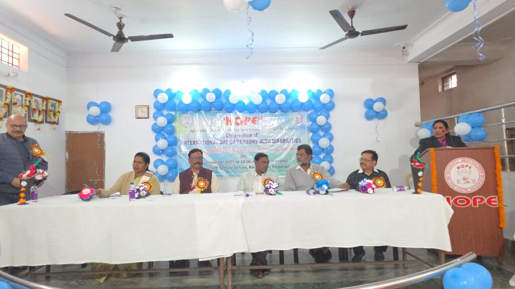 ରାଜଗାଙ୍ଗପୁର: ବୁଧବାର, ଡିସେମ୍ବର 3, 2025 ସକାଳ 10 ଘଟିକା ରେ ହୋପ୍ ସ୍କୁଲ୍ ପରିସର ରେ ଅନ୍ତର୍ଜାତୀୟ ଭିନ୍ନକ୍ଷମ ଦିବସ ଅନୁଷ୍ଠିତ ହୋଇଯାଇଛି । ଉକ୍ତ ଦିବସ ହୋପ୍ ସ୍କୁଲ୍ ର ସଭାପତି ଲକ୍ଷ୍ମୀଧର ପାଣିଗ୍ରାହୀ ଏବଂ ସଚିବ ଆଶୀର୍ବାଦ ସାମଲଙ୍କ ଅଧ୍ୟକ୍ଷତାରେ, “ସାମାଜିକ ପ୍ରଗତିକୁ ଆଗେଇ ନେବା ପାଇଁ ଭିନ୍ନକ୍ଷମ ବ୍ୟକ୍ତିମାନଙ୍କୁ ସାମିଲ କରୁଥିବା ସମାଜକୁ ପ୍ରୋତ୍ସାହିତ କରିବା” ବିଷୟବସ୍ତୁ ଉପରେ ଆଧାରିତ ଥିଲା । ଏହି ଅବସର ରେ ରାଜଗାଙ୍ଗପୁର ଏସଡିପିଓ ବିଭୂତି ଭୂଷଣ ଭୋଇ ଏବଂ ସ୍ଥାନୀୟ ଉପନଗରପାଳ ପ୍ରଦୀପ ପ୍ରଜ୍ଜ୍ୱଳନ କରି କାର୍ଯ୍ୟକ୍ରମର ଶୁଭାରମ୍ଭ କରିଥିଲେ ଓ ସମ୍ମାନିତ ଅତିଥିମାନଙ୍କ ମଧ୍ୟରେ ଡକ୍ଟର ସରୋଜିନୀ ସାହୁ, ଡକ୍ଟର ପି. ସାହୁ, ସୁଜାତା ଦାସ ଏବଂ ୱାର୍ଡ ନମ୍ବର 14 କାଉନସିଲର ସସ୍ମିତା ତିରୁ ପ୍ରମୁଖ ଯୋଗ ଦେଇଥିଲେ ।